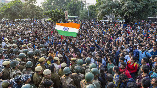 ആഡിറ്റോറിയത്തിന്റെ ഗേറ്റിനുമുന്നിൽ പ്രതിഷേധിച്ച വിദ്യാർത്ഥികളെ പോലീസ് വളഞ്ഞിട്ട് മർദ്ദിച്ചു. പോലീസിന്റെ മർദ്ദനത്തിൽ നിരവധി വിദ്യാർത്ഥികൾക്ക് പരിക്കേറ്റു. ദില്ലിയിലെ അഭിഭാഷക-പോലീസ് സംഘർഷവും പോലീസുകാരുടെ പണിമുടക്കും ഒർമ്മിപ്പിച്ച് വിദ്യാർത്ഥികൾ മുദ്രാവാക്യം മുഴക്കി. ബിരുദദാന ചടങ്ങിനെത്തിയ ജെഎൻയു പൂർവ്വ വിദ്യാർത്ഥികളും സമരക്കാർക്ക് പിന്തുണ പ്രഖ്യാപിച്ച് ആഡിറ്റോറിയത്തിനുള്ളിൽ പ്രതിഷേധിച്ചിരുന്നു.