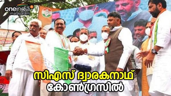 കർണാടക സംസ്ഥാന പിന്നോക്ക കമ്മീഷൻ മുൻ ചെയർമാൻ സിഎസ് ദ്വാരകനാഥ് ആണ് കഴിഞ്ഞ ദിവസം കോണ്ഗ്രസില് ചേര്ന്നത്. മുൻ മുഖ്യമന്ത്രി സിദ്ധരാമയ്യ, കെപിസിസി പ്രസിഡന്റ് ഡികെ ശിവകുമാർ എന്നിവരുടെ സാന്നിധ്യത്തില് ഗംഭീര സ്വീകരണവും സിഎസ് ദ്വാരകനാഥിന് കോണ്ഗ്രസ് ഒരുക്കി.
