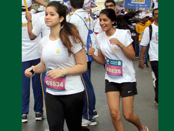റിലയന്സ് കാപിറ്റലിന്റെ എജിഎം ആയ ടിന അംബാനിയും സിനിമ താരങ്ങളായ ഗുല്ഷന് ഗോവറും അഫ്താബ് ശിവദാസ്നിയും മാരത്തോണിലെ ഓട്ടക്കാരെ പ്രോത്സാഹിപ്പിക്കുന്നു.