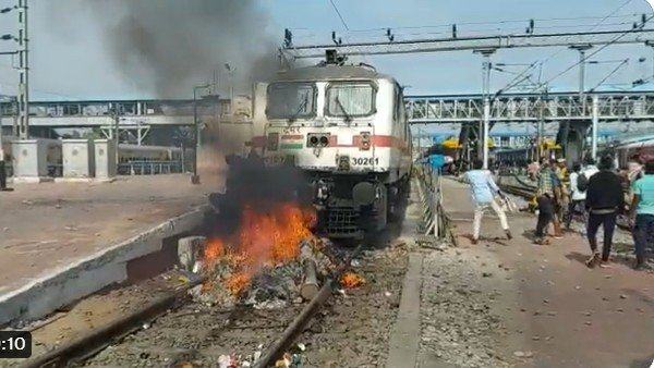 അഗ്നിപഥ് പദ്ധതി പിന്വലിക്കണമെന്നാവശ്യപ്പെട്ട് രാജ്യവ്യാപകമായി പ്രതിഷേധം നടക്കുകയാണ്.പ്രിഷേധത്തിനിടെ പ്രതിഷേധക്കാര് ബീഹാറില് ട്രെയിനിന് തീയിട്ടു. ഹാജിപൂരില് ജമ്മു താവി എക്സ്പ്രസിന്റെ രണ്ട് കോച്ചുകള് കത്തിനശിച്ചു. ഉത്തര്പ്രദേശിലെ ബലിയയില് നിര്ത്തിയിട്ടിരുന്ന ട്രെയിന് തകര്ത്തു. പ്രതിഷേധം ശക്തമായിക്കൊണ്ടിരിക്കുന്നുവെന്ന റിപ്പോര്ട്ടുകളാണ് വന്നുകൊണ്ടിരിക്കുന്നത്.