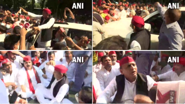 സംഭവ സ്ഥലം സന്ദർശിക്കാൻ ഇറങ്ങിയ അഖിലേഷിനെ വീടിന് മുന്നിൽ വെച്ച് പോലീസ് തടയുകയായിുന്നു. വിക്രമാദിത്യ മാർഗിലുള്ള അഖിലേഷിന്റെ വീടിന് മുൻപിൽ റോഡ് തടയുന്നതിനായി പോലീസ് ട്രക്കുകളും നിർത്തിയിട്ടിരുന്നു. എന്നാൽ അഖിലേഷ് വീടിന് മുന്നിൽ കുത്തിയിരുന്ന് പ്രതിഷേധിച്ചു. അദ്ദേഹത്തിനൊപ്പം എസ്പി നേതാക്കാളയ രാം ഗോപാൽ യാദവ്, ആനന്ദ് ബദൗരിയ തുടങ്ങിയവരും നൂറ് കണക്കിന് സമാദ്വി പ്രവർത്തകരും കുത്തിയിരുന്ന് പ്രതിഷേധിച്ചു. ഇതിനിടയിൽ പോലീസും സമാജാവാദി പ്രവർത്തകരും തമ്മിൽ സംഘർഷമുണ്ടായി. അതോസമയം സംഘർഷത്തിനിടെ എസ്പി പ്രവർത്തകർ പോലീസ് വാഹനത്തിന് തീയിട്ടു. ഇതിന് പി്നനാലെയാണ് അഖിലേഷിനെ പോലീസ് അറസ്റ്റ് ചെയ്തത്.