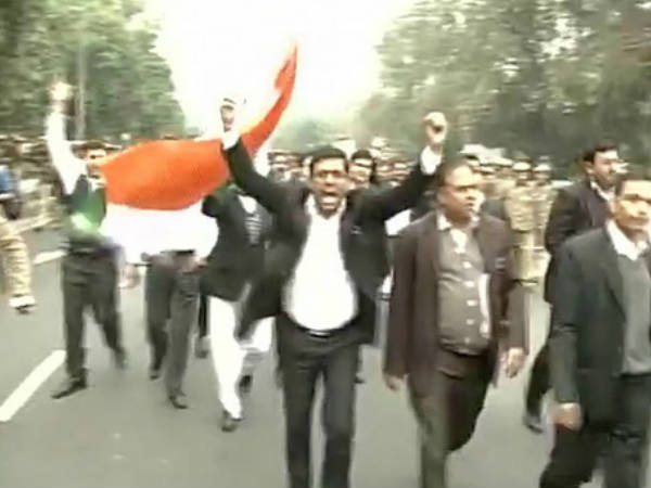വെള്ളിയാഴ്ച ഉച്ചയ്ക്ക് പാട്യാല ഹൗസ് കോടതിക്കു മുന്നില് നിന്നും ഇന്ത്യാഗേറ്റ് വരെ അഭിഭാഷകരുടെ നേതൃത്വത്തില് പ്രതിഷേധ പ്രകടനം നടത്തി.