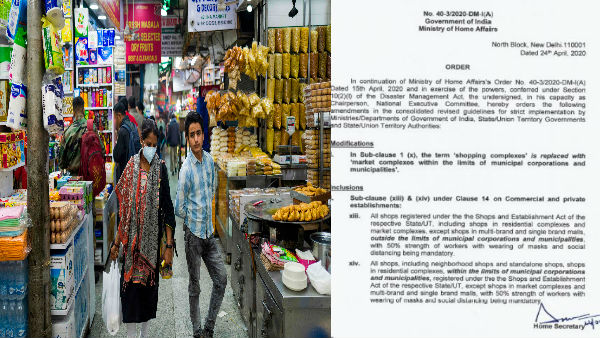 നഗരസഭാ കോര്പ്പറേഷന് പരിധിയില് വരുന്ന ഷോപ്സ് ആന്ഡ് എസ്റ്റാബ്ലിഷ്മെന്റ് നിയമ പ്രകാരം രജിസ്റ്റര് ചെയ്തിട്ടുള്ള അടുത്തടുത്തുള്ള കടകളും ഒറ്റപ്പെട്ട് നില്ക്കുന്ന കടകളും താമസ കേന്ദ്രങ്ങള്ക്ക് അടുത്തുള്ള കടകളും തുറക്കാമെന്നും കേന്ദ്രം വിശദീകരിച്ചു.