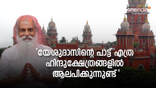 ഗാനഗന്ധര്വന് യേശുദാസിന്റെ ഭക്തിഗാനങ്ങള് ക്ഷേത്രങ്ങളില് വെക്കുന്നില്ലേ എന്ന് കോടതി ചോദിച്ചു. ജന്മനാ ക്രിസ്ത്യാനിയായ ഡോ. കെ ജെ യേശുദാസിന്റെ വിവിധ ഹൈന്ദവ ദൈവങ്ങളെ സ്തുതിച്ചുള്ള ഭക്തിഗാനങ്ങള് ക്ഷേത്രങ്ങളില് യാതൊരു വിധ തടസവുമില്ലാതെ ആലപിക്കപ്പെടുന്നു എന്നത് പൊതുവെ അറിവുള്ള കാര്യമാണ്. വേളാങ്കണ്ണിയിലും നാഗൂര് ദര്ഗയിലും ഇതര മതസ്ഥര്ക്ക് പ്രവേശനം അനുവദിക്കുന്നതുണ്ട് എന്നും മദ്രാസ് ഹൈക്കോടതി ചൂണ്ടിക്കാട്ടി.