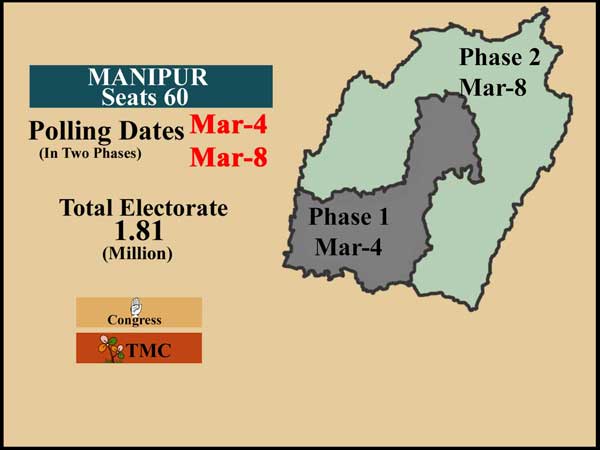 അജ്ഞാതരുടെ ആക്രമണത്തില് പരിക്കേറ്റ പിആര്ജെഎ സ്ഥാനാര്ത്ഥിയെ ആശുപത്രിയില് പ്രവേശിപ്പിച്ചിട്ടുണ്ട്. ഇംഫാല് ഈസ്റ്റ്, ഇംഫാല് വെസ്റ്റ്, ബിഷ്ണുപൂര്, ചുരാചന്ദ്പൂര്, കംഗ്പോക്പി എന്നീ ജില്ലകളിലെ 1,643 പോളിംഗ് സ്റ്റേഷനുകളിലായാണ് വോട്ടെടുപ്പ്. പിആര്ജെഎയുടെ തലപ്പത്തുള്ള ഇറോം ശര്മിള ചാനു ഖുറായ് നിയമസഭാ മണ്ഡലത്തിലെ 3/39 ബൂത്തിലെത്തി വോട്ട് രേഖപ്പെടുത്തിയിരുന്നു.