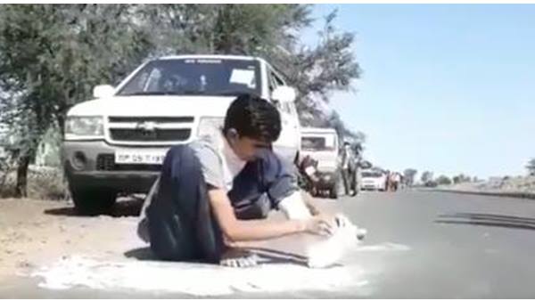 ഭോപ്പാൽ: രാജ്യവ്യാപക ലോക്ക് ഡൌൺ പ്രഖ്യാപിച്ചതോടെ നിരവധി കുടിയേറ്റ തൊഴിലാളികളാണ് സ്വദേശത്തേക്ക് മടങ്ങാൻ കഴിയാതെ പലയിടങ്ങളിലായി കുടുങ്ങിപ്പോയത്. ഇതിനിടെയാണ് റോഡിലിരുന്ന് കത്രിക കൊണ്ട് പ്ലാസ്റ്റർ മുറിച്ചുമാറ്റുന്ന യുവാവിന്റെ ചിത്രം വൈറലായത്. പരിക്കേറ്റ കാലുമായി സ്വദേശത്തേക്ക് മടങ്ങുകയായിരുന്ന യുവാവാവാണ് കാലിലെ പ്ലാസ്റ്റർ കത്രിക ഉപയോഗിച്ച് മുറിച്ചുമാറ്റിക്കുന്നത്. രാജസ്ഥാനിൽ നിന്നുള്ള യുവാവിന്റെ ചിത്രമാണ് കുടിയേറ്റ തൊഴിലാളികളുടെ നേർച്ചിത്രമായി മാറിക്കൊണ്ടിരിക്കുന്നത്.