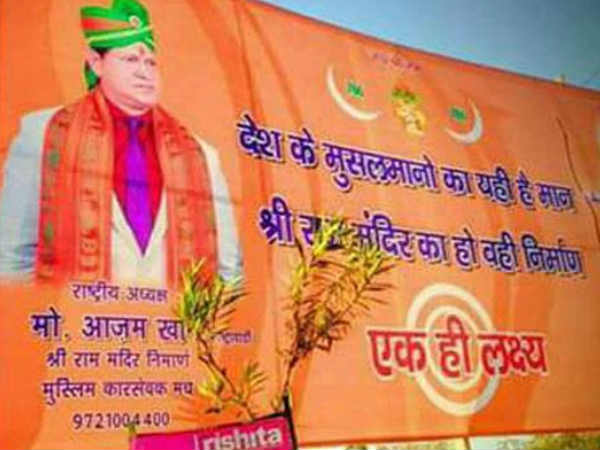 ശ്രീ റാം മന്ദിര് നിര്മ്മാണ് മുസ്ലിം കര് സേവക് മഞ്ച് പ്രസിഡണ്ട് അസം ഖാന് എന്നയാളാണ് പത്തോളം പോസ്റ്ററുകള് ലക്നൗവിലും മറ്റിടങ്ങളിലുമായി സ്ഥാപിച്ചിരിക്കുന്നത്. അസം ഖാന്റെ ചിത്രം സഹിതമാണ് പോസ്റ്ററുകള് പതിച്ചിരിക്കുന്നത്.
