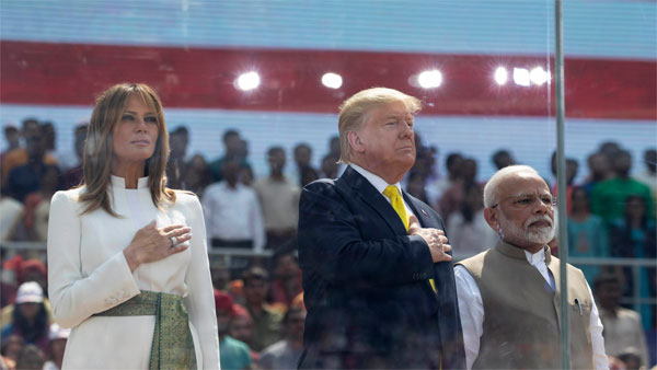 പകല് 11.40ഓടെ അഹമ്മദാബാദിലെ വിമാനത്താവളത്തിലെത്തിയ ട്രംപും സംഘവും ആദ്യം പോയത് സബര്മതി ആശ്രമത്തിലേക്കാണ്. ശേഷം മൊട്ടേര സ്റ്റേഡിയത്തിലേക്ക്. റോഡിന്റെ ഇരുവശത്തുമായി ആളുകള് തിങ്ങി നിന്നിരുന്നു. ഇന്ത്യയുടെയും അമേരിക്കയുടെയും പതാക പിടിച്ചായിരുന്നു പലരും നിന്നത്. സ്റ്റേഡിയത്തിന്റെ ഉദ്ഘാടനവും പൊതുപരിപാടിയുമാണ് മൊട്ടേര സ്റ്റേഡിയത്തില് നടന്നത്.