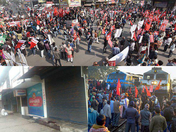 Visuals from Patna: RJD, SP, HAM & Left parties participate in the two-day nationwide strike called by Central Trade Unions demanding minimum wages and social security schemes among others. #Bihar pic.twitter.com/rx8pnACkGS