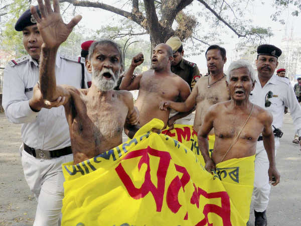 കോണ്ഗ്രസിനെതിരെ നഗ്നരായി പ്രതിഷേധം