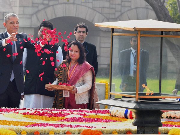 ഗാന്ധിജി അന്ത്യ വിശ്രമം കൊള്ളുന്ന രാജ് ഘട്ടില് ഒബാമ സന്ദര്ശനം നടത്തി.
