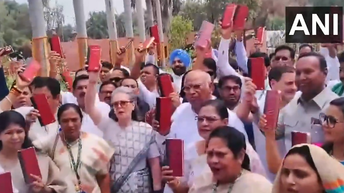 ആദ്യദിനം തന്നെ പ്രതിപക്ഷ പ്രതിഷേധം; ഭരണഘടന ഉയര്ത്തി ഇന്ത്യാ നേതാക്കള്