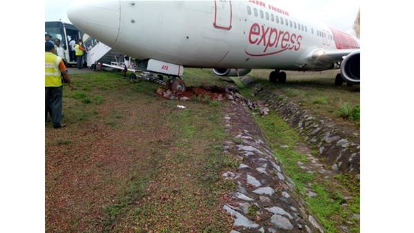 പാര്ക്കിങ് ബേയിലേക്കു തിരയുന്നതിനിടെ നിയന്ത്രണം വിട്ടു റണ്വേയില് നിന്നും തെന്നിമാറുകയും തുടര്ന്ന് മണലും ചെളിയും നിറഞ്ഞ ഭാഗത്തേക്ക് തെന്നിനീങ്ങിയാണ് അപകടം സംഭവിച്ചത്. ക്യാപ്റ്റന് തുടരെ തുടരെ സഡന് ബ്രേക്ക് ഉപയോഗിച്ചതോടെയാണ് റണ്വേയില് നിന്നും തെന്നി ചളിയും മണലുമുള്ള ഭാഗത്തേക്ക് നീങ്ങിയതെന്നാണ് സൂചന. പൈലറ്റിന്റെ മനസാന്നിധ്യവും ഭാഗ്യവും കൊണ്ട് മാത്രമാണ് 183 യാത്രക്കാരും ആറ് വിമാന ജോലിക്കാരും അപകടത്തില്പ്പെടാതെ രക്ഷപ്പെട്ടത്. 2010 ല് എയര് ഇന്ത്യ എക്സ്പ്രസ് വിമാനം അപകടത്തില്പ്പെട്ടതിന്റെ ഇരുപത് മീറ്ററോളം അരികിലായാണ് വിമാനം ചെളിയില് പുണ്ടു നിന്നത്.