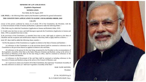 1954ല് രാഷ്ട്രപതിയുടെ പ്രത്യേക അധികാരം ഉപയോഗിച്ച് കൊണ്ട് വന്ന ഉത്തരവാണ് രാഷ്ട്രപതിയുടെ തന്നെ പ്രത്യേക അധികാരം ഉപയോഗിച്ച് സര്ക്കാര് റദ്ദ് ചെയ്തിരിക്കുന്നത്. ഇന്ത്യയിലെ ഭരണഘടനാപരമായ എല്ലാ നിയമങ്ങളും ഇതോടെ ജമ്മു കശ്മീരിനും ബാധകമായിരിക്കുകയാണ്.