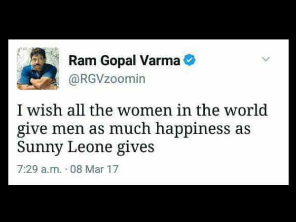 സണ്ണി ലിയോണ് ചെയ്യുന്നത് പോലെ ലോകത്തിലെ എല്ലാ സ്ത്രീകളും പുരുഷന്മാരെ സുഖിപ്പിയ്ക്കൂ എന്നാണ് രാംഗോപാല് വര്മ്മ ട്വീറ്റ് ചെയ്തത്.