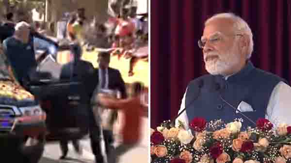 മാലയുമായി മോദിക്കരികിലേക്ക് ഓടിയെത്തി യുവാവ്; ഗുരുതര സുരക്ഷാ വീഴ്ച, വീഡിയോ കാണാം