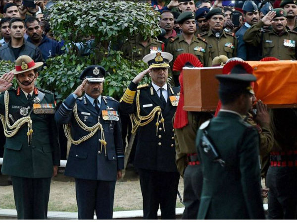 പ്രധാന മന്ത്രി നരേന്ദ്ര മോദി, കേന്ദ്ര പ്രതിരോധ മന്ത്രി മനോഹര് പരീക്കര്, അരവിന്ദ് കെജ്രിവാള്, കര, നാവിക, വ്യോമ സേനാധിപന്മാര് തുടങ്ങിയവര് ആദരാഞ്ജലികള് അര്പ്പിച്ചു.