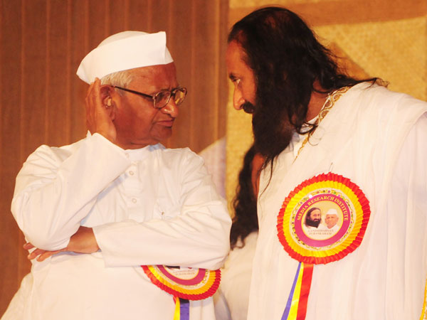 ഹസാരെയും ശ്രീശ്രീ രവിശങ്കറും സൗഹൃദ സംഭാഷണത്തില്