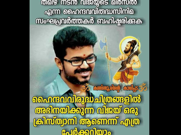 എന്നാല് ഇപ്പോള് അതിലും കഷ്ടമാണ് കാര്യങ്ങള്. വിജയ് ഹിന്ദു വിരുദ്ധനാണെന്ന രീതിയില് ആണ് പ്രചാരണം. അതിന് വിജയുടെ മതം തന്നെയാണ് ഇവര് ഉപയോഗിക്കുന്നത്. ഹൈന്ദവ വിരുദ്ധ ചിത്രങ്ങളില് അഭിനയിക്കുന്ന വിജയ് ഒരു ക്രിസ്ത്യാനി ആണെന്ന് എത്ര പേര്ക്ക് അറിയാം എന്ന ചോദ്യമാണ് ഉയര്ത്തുന്നത്.