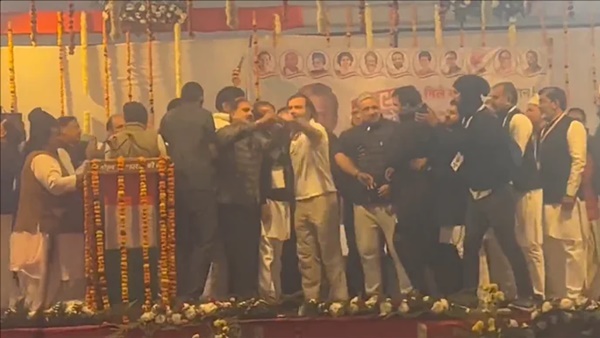 സ്റ്റേജിൽ കട്ടകലിപ്പിൽ രാഹുൽ ഗാന്ധി, വീഡിയോ പങ്കിട്ട് അമിത് മാളവ്യ; 'പെരുമാറാൻ പഠിക്കൂ'