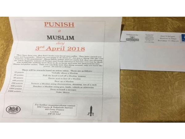 ഏപ്രില് മൂന്നിന് മുസ്ലിമിനെ ആക്രമിക്കാന് ആഹ്വാനം ചെയ്ത് ബിട്ടനില് കത്തുകള് പ്രചരിക്കുന്നു...