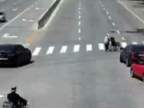 ഷാൻഡോങ് പ്രവശ്യയിലുള്ള സുരക്ഷാ ക്യാമറയിലാണ് ദ്യശ്യങ്ങൽ പതിഞ്ഞതെന്നു പീപ്പിൾസ് ഡെയ് ലി പറയുന്നു.വിസ്താരമുള്ള റോഡിലെ സീബ്ര ക്രോസിങ്ങിലൂടെ പ്രയമേറിയ വൃദ്ധ വീൽ ചെയറുമായി പോകുകയായിരുന്നു. എന്നാൽ സ്ത്രീ റോഡിൻറെ മധ്യഭാഗത്തെത്തിയപ്പോൾ സിഗ്നൽ മാറി. വാഹനങ്ങൾ വോഗം വരാൻ തുടങ്ങി.