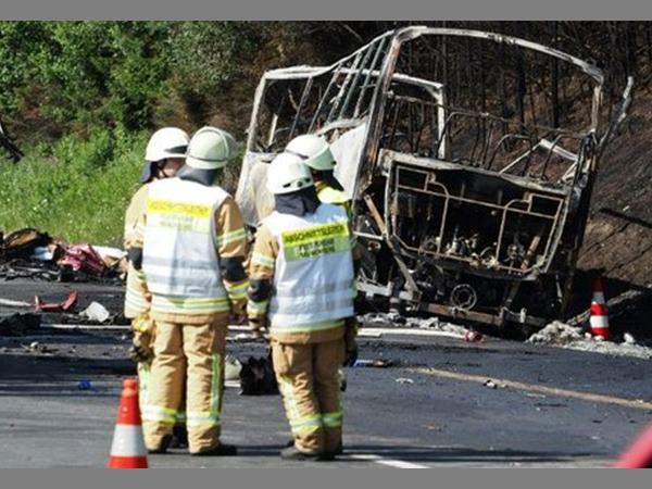 രണ്ട് വാഹനങ്ങളുടെയും ഡ്രൈവര്മാര് കൂട്ടിയിടിയുടെ ആഘാതത്തില് വാഹനങ്ങള്ക്കുള്ളില് കുടുങ്ങിക്കിടക്കുകയായിരുന്നു. സ്റ്റാമ്പക്കിലെ ബവേറിയന് ടൗണിന് സമീപത്തായിരുന്നു സംഭവം. ഈസ്റ്റേണ് ജര്മനിയിലെ സാക്സോണി സ്റ്റേറ്റില് നിന്നുള്ളവരാണ് അപകടത്തില്പ്പെട്ടതെന്ന് ബില്ഡ് ദിനപത്രം റിപ്പോര്ട്ട് ചെയ്യുന്നു. ഗതാഗത മന്ത്രി അലക്സാണ്ടര് ഡോര്ബ്രിന്ഡ് ബെയ്റൂത്ത് അപകട സ്ഥലത്തേയ്ക്ക് തിരിച്ചതായി മാധ്യമങ്ങള് റിപ്പോര്ട്ട് ചെയ്യുന്നു. 200 ഓളം രക്ഷാ പ്രവര്ത്തകരാണ് സ്ഥലത്തെത്തിയത്. അപകടത്തെ തുടര്ന്ന് അപകടം നടന്ന എ9 ഹൈവേ ബ്ലോക്ക് ചെയ്തിട്ടുണ്ട്. രക്ഷാ പ്രവര്ത്തകര്ക്കും പരിക്കേറ്റതായി റിപ്പോര്ട്ടുകളുണ്ട്.