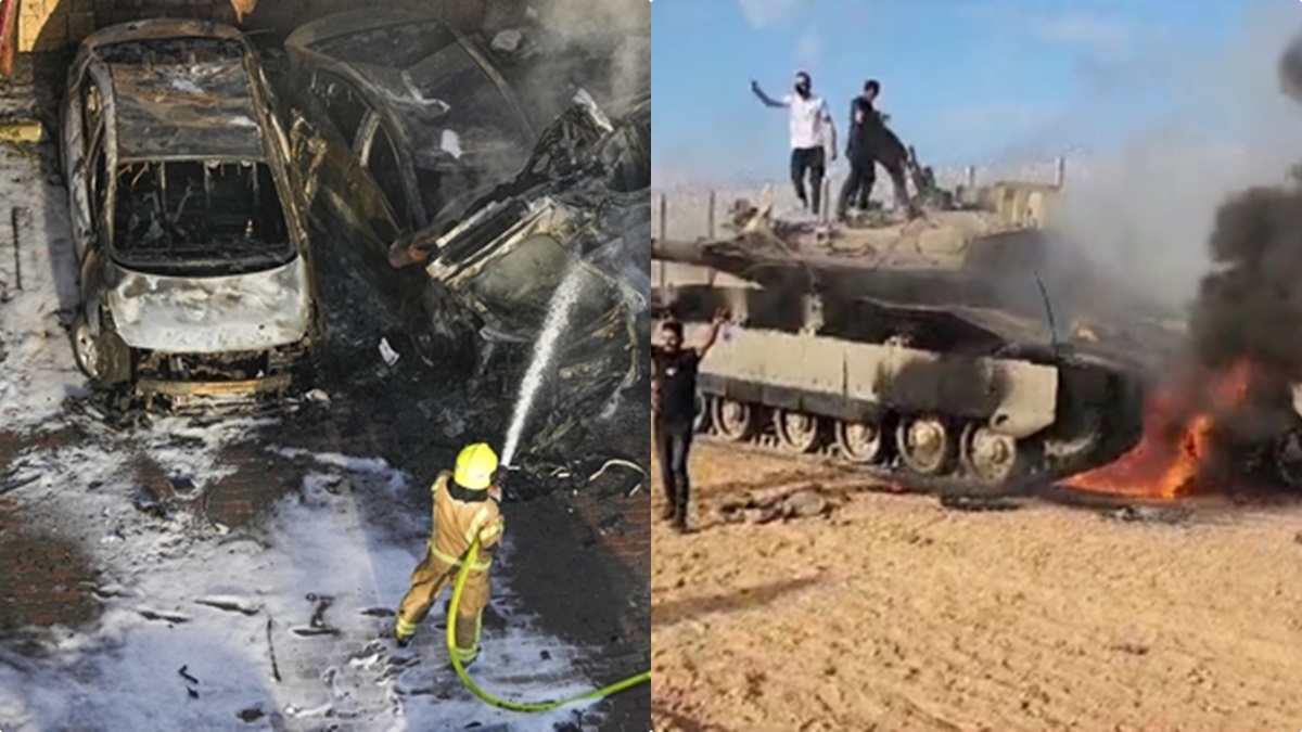 ബൈക്കുകള്, എസ്യുവികളും, പാരാഗ്ലൈഡര്മാരും, ചേര്ന്നാണ് നഗരങ്ങളിലേക്ക് എത്തിയത്. ഇസ്രയേലിലെ ജനങ്ങളുടെ നേരെ ഹമാസ് പ്രവര്ത്തകര് വെടിയുതിര്ക്കുന്ന വീഡിയോ സോഷ്യല് മീഡിയയില് പ്രചരിക്കുന്നുണ്ട്. ഇസ്രയേലിന്റെ ദക്ഷിണ നഗരങ്ങളിലുള്ളവര്ക്ക് നേരെയാണ് വെടിവെപ്പുണ്ടായത്. ഹമാസ് പ്രവര്ത്തകര് ഇവിടേക്ക് നുഴഞ്ഞു കയറിയെന്നാണ് റിപ്പോര്ട്ട്. നഗരത്തിലൂടെ സഞ്ചരിക്കുന്ന കാറുകളില് ഉള്ളവര്ക്ക് നേരെ ഹമാസ് പ്രവര്ത്തകര് വെടിയുതിര്ക്കുന്ന വീഡിയോ ഡെറോറ്റ് നഗരത്തിലെ താമസക്കാരന് പങ്കുവെച്ചിട്ടുണ്ട്. ഇയാള് വീടിന്റെ ടെറസില് നിന്നാണ് ഈ വീഡിയോ ഷൂട്ട് ചെയ്തത്.