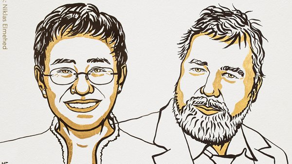 അഭിപ്രായ സ്വാതന്ത്ര്യത്തിന്റെ പോരാളികൾ, സമാധാന നൊബേല് പുരസ്ക്കാരം രണ്ട് മാധ്യമപ്രവര്ത്തകര്ക്ക്