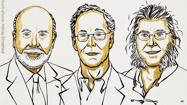ബെന് ബെര്നാന്കെ, ഡഗ്ലസ് ഡയമണ്, ഫിലിപ്പ് ഡൈവിഗ് എന്നിവര് ചേര്ന്നാണ്. പ്രാക്ടിക്കലായി വളരെയധികം പ്രാധാന്യം ഇവരുടെ വിലയിരുത്തലിനുണ്ട്. ഫിനാന്ഷ്യല് മാര്ക്കറ്റുകള് നിയന്ത്രിക്കുന്നതിനും, ധനപ്രതിസന്ധിയെ കൈകാര്യം ചെയ്യുന്നതിനും ഇത് ഒരുപാട് ഉപകാരപ്പെട്ടിട്ടുണ്ടെന്നും നൊബേല് കമ്മിറ്റി പറഞ്ഞു.