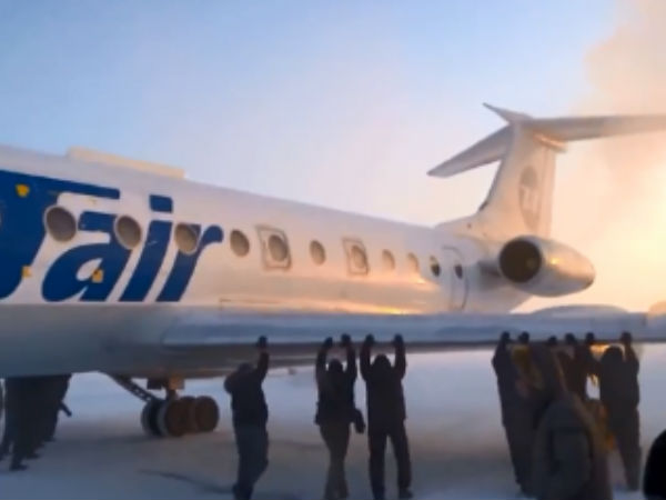കട്ടികൂടിയ ജാക്കറ്റുകള് ധരിച്ച്, യാത്രക്കാര് ഇറങ്ങി, വിമാനത്തിന്റെ ചിറകുകളില് പിടിച്ച് തള്ളിനീക്കുക കാഴ്ച രസകരം തന്നെ. സൈബീരിയക്കാരായിരുന്നു യാത്രക്കാരില് അധികവും. ഒരു കേക്ക് കഴിക്കുന്നതുപോലെ അത്ര ലാഘവത്തിലയിരുന്നു അവര് വിമാനം തള്ളി നീക്കിയതെന്നായിരുന്നു ഇഗാര്ക്കയിലെ ഒരു വിമാനത്താവള ഉദ്യോഗസ്ഥന് പ്രതികരിച്ചത്.