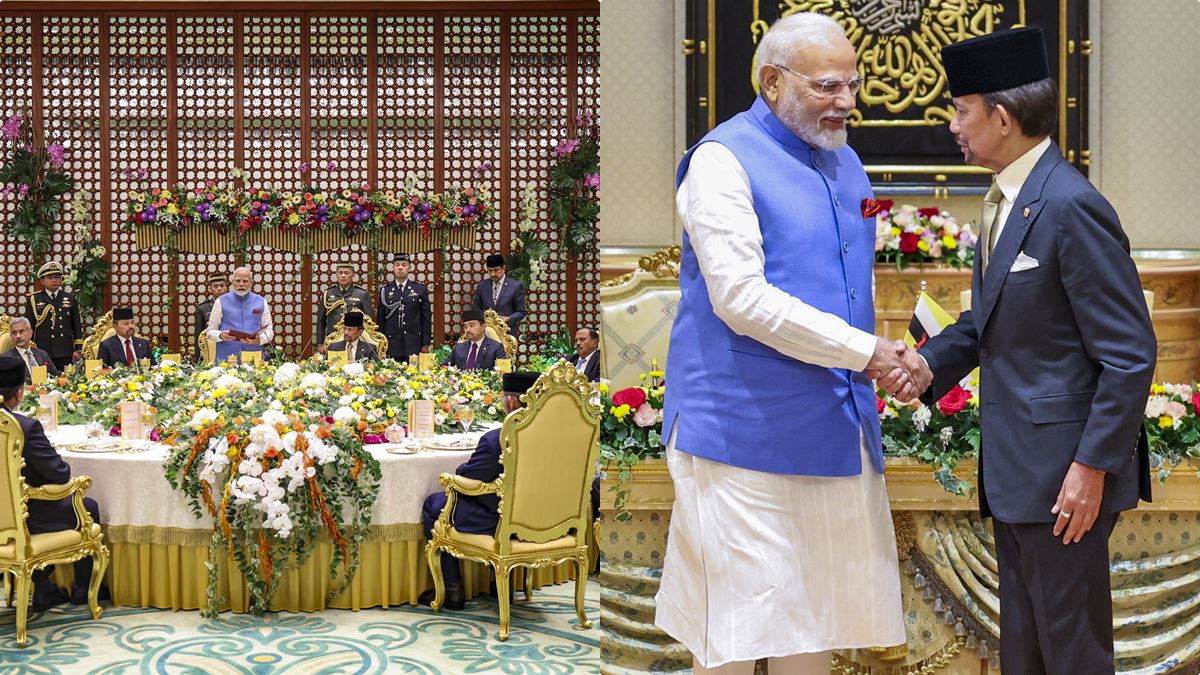 ബ്രൂണൈ സുല്ത്താനുമായി മോദിയുടെ ഊഷ്മള കൂടിക്കാഴ്ച്ച, കൂടുതല് സഹകരണം; മടങ്ങുന്നതിന് മുമ്പ് വിരുന്ന്