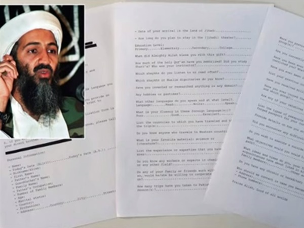 അപേക്ഷയിലെ വിവരങ്ങള് കൃത്യമായും സത്യസന്ധമായും രേഖപ്പെടുത്തണമെന്ന് അപേക്ഷകരോട് ആവശ്യപ്പെടുന്നുണ്ട്.2011ല് ഒസാമ ബിന് ലാദനെ വധിച്ച അബോട്ടാബാദില് നിന്നും ലഭിച്ച തീവ്രവാദി ജോലി അപേക്ഷ ഫാറത്തിലാണ് ഈ ചോദ്യങ്ങള് കണ്ടെത്തിയത്.