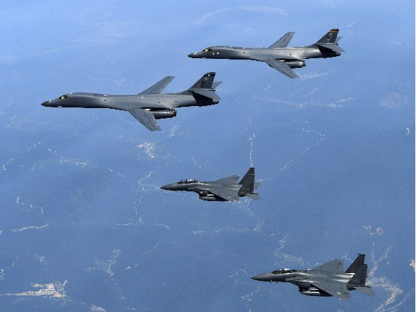 ഗുവാമിലെ വ്യോമതാവളത്തില് നിന്ന് പറന്നുയര്ന്ന രണ്ട് ബി 1ബി ലാന്സര് ബോംബര് വിമാനങ്ങളാണ് വെള്ളിയാഴ്ച കൊറിയന് ഉപഭൂഖണ്ഡത്തിന് മുകളില് വട്ടമിട്ട് പറന്നത്. ജപ്പാന് പശ്ചിമ ദിശയില് വച്ച് ജപ്പാന് എയര് സെല്ഫ് ഡിഫന്സ് ഫോഴ്സ് ഫൈറ്റര് വിമാനങ്ങളും ചേര്ന്നുവെന്ന് യുഎസ് പസഫിക് എയര്ഫോഴ്സ് പ്രസ്താവനയില് വ്യക്തമാക്കുന്നു.