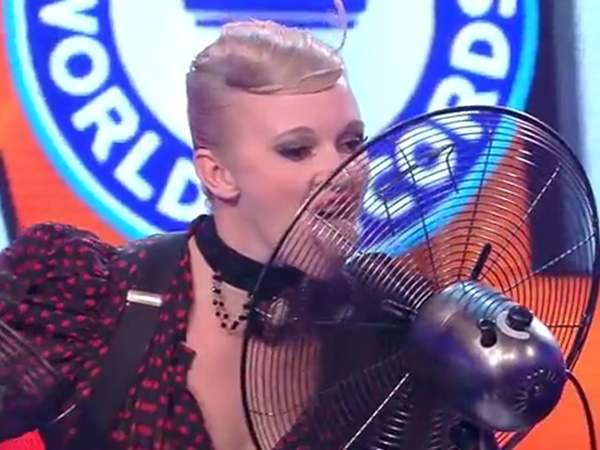എങ്കില് ചില സാഹസികര് കറങ്ങുന്ന ഫാന് കൈ ഉപയോഗിച്ച് പിടിച്ചു നിര്ത്താറുണ്ട്. എന്നാല് അതിനെയും കവച്ചു വെച്ചിരിക്കുകയാണ് ഒരു ഓസ്ട്രിയക്കാരി. സോ എല്ലിസ് എന്ന ആസ്ത്രേലിയന് യുവതി കറങ്ങുന്ന ഫാന് പിടിച്ചു നിര്ത്തി. ആരെയും അതിശയിപ്പിക്കുന്ന രംഗങ്ങളായിരുന്നു അരങ്ങേറിയത്.