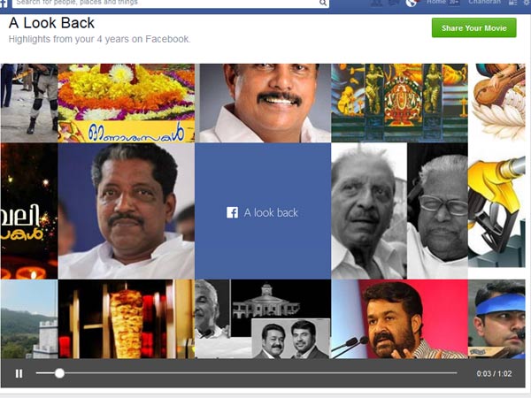 വാഷിങ്ടണ്: ഫേസ്ബുക്കിന്റെ പത്താം പിറന്നാള് ദിനത്തില് ആരാധകര്ക്കായി ഫേസ്ബുക്ക് നല്കിയ സമ്മാനമായിരുന്നു ലുക്ക് ബാക്ക് വീഡിയോ. അപ്ലോഡ് ചെയ്ത് മണിക്കൂറുകള്ക്കകം ഹിറ്റായിമാറിയ ഈ സൗകര്യം ഫേസ്ബുക്കില് വൈറലായി മാറുകയാണ്.