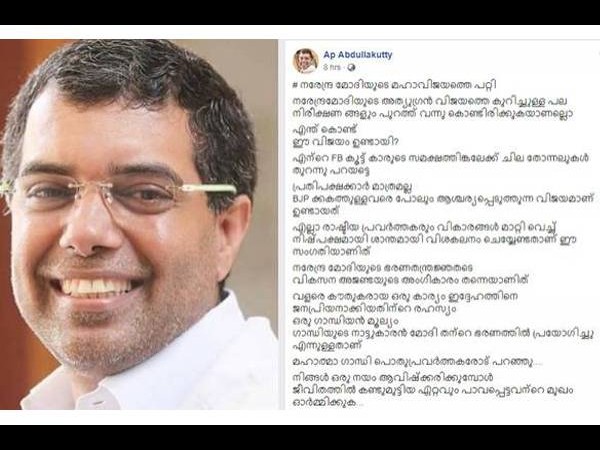 അബ്ദുള്ളക്കുട്ടിക്ക് തുണ നരേന്ദ്രമോദി സ്തുതി