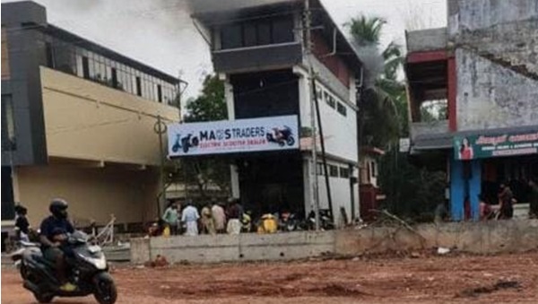 ബാബാറ്ററി റീചാര്ജ്ജ് ചെയ്യുമ്പോള് പൊട്ടിത്തെറിച്ചു: ഇലക്ട്രിക് സ്കൂട്ടര് ഷോറൂം കത്തിനശിച്ചു