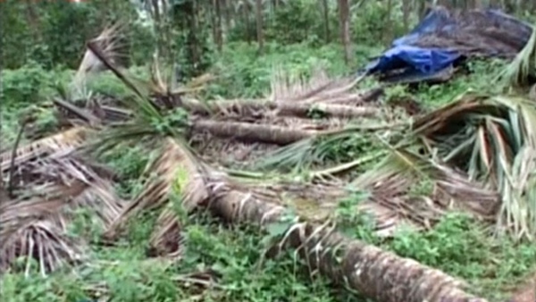 പോളിത്തീന് പാക്കറ്റുകള് പൊട്ടിച്ചും തൈകള് കടിച്ചു പറിച്ചും ചിതറിയിട്ട നിലയിലാണ്. 100രൂപയ്ക്ക് വിൽപ്പനയ്ക്ക് തയ്യാറായ തെങ്ങിന് തൈകളും വ്യാപകമായി നശിപ്പിച്ചു. മൂന്ന് ലക്ഷത്തോളം രൂപയുടെ നഷ്ടം ഉണ്ടായതായാണ് കണക്കാക്കുന്നത്. ആനകള് തെങ്ങുകള് കുത്തി വീഴ്ത്തുമ്പോള് കുരങ്ങുകള്ക്ക് പ്രിയം കരിക്കിന്കുലകളാണ്. ഒരുകാലത്ത് കുലകള് തിങ്ങി കായ്ച്ചുനില്കുന്ന തെങ്ങുകള് ഫാമിന്റെ ആകര്ഷണങ്ങളില് ഒന്നായിരുന്നു. മുപ്പത്തിനായിരത്തിലേറെ വിവിധ തരത്തിലുള്ള അത്യുല്പ്പാദന ശേഷിയുള്ള തെങ്ങുകളാണ് കേന്ദ്രസര്ക്കാരിന്റെ കയ്യിലുണ്ടായിരുന്ന കാലത്ത് സെന്ട്രല് സ്റ്റേറ്റ് ഫാമില് വെച്ച് പിടിപ്പിച്ചിരുന്നത്. ആറളം ഫാമിന്റെ വരുമാനത്തില് മൂന്നില് രണ്ട് ഭാഗവും തെങ്ങില് നിന്നാണ് ലഭിച്ചിരുന്നത്. ഫാമിന്റെ ഒന്നാം ബ്ലോക്കിന് സമീപത്തെ ഗോഡൗണിലെ വിശാലമായ മൈതാനം നിറയെ അന്ന് തേങ്ങകള് കൂട്ടിയിട്ടിരിക്കുന്ന കാഴ്ച്ച തന്നെ മാനോഹരമായിരുന്നു.