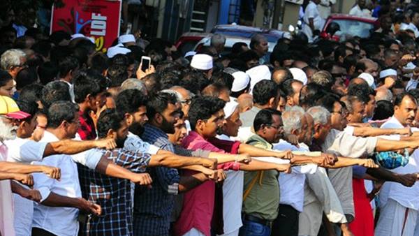 മനുഷ്യശൃംഖല: കണ്ണൂരിൽ പങ്കെടുത്തത് അഞ്ച് ലക്ഷം പേർ : മുകുന്ദനും ടിപത്മനാഭനും കുരീപ്പുഴയും കണ്ണികൾ