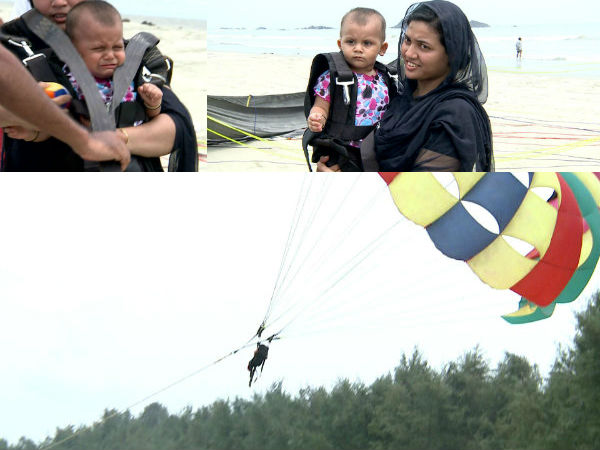 പാരഗ്ളൈഡിംഗിന് ഒരുങ്ങുമ്പോള് തന്നെ കുഞ്ഞ് പേടിച്ച് കരയുന്നുണ്ടായിരുന്നു. ഗ്ളൈഡിംഗ് കഴിഞ്ഞിറങ്ങുമ്പോള് കുട്ടി പേടിച്ച് വിറയ്ക്കുകയായിരുന്നു.