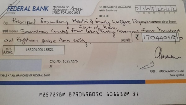 കണ്ണൂരില് ഇതേ ആവശ്യത്തിനുവേണ്ടി പിരിച്ചെടുത്ത തുകയിലും വലിയ സംഖ്യ ബാക്കിവന്നിരുന്നു. അപ്പോഴും ഇതേ ആവശ്യം ഉയര്ന്നു. എന്തായാലും ഈ തുക സര്ക്കാരിലേക്ക് നല്കണമെന്ന നിര്ദേശമാണ് കോടതിയില്നിന്നുണ്ടായിരിക്കുന്നത്. ഇതുമായി ബന്ധപ്പെട്ട് കലക്ടറേറ്റില്നിന്ന് കത്തു ലഭിച്ചു. എക്കൗണ്ടില് ലഭിച്ച 16.60 കോടി രൂപയും പലിശ ഇനിത്തില് വന്ന 43.60 ലക്ഷം രൂപയും ചേര്ത്ത് 17.04 കോടി രൂപയാണ് ഇന്നുവരെ ആകെയുണ്ടായിരുന്നത്. കോടതിയുടെ നിര്ദേശവും സര്ക്കാരിന്റെ ആവശ്യവും കണക്കിലെടുത്ത് ഈ തുക ഞങ്ങള് സര്ക്കാര് എക്കൗണ്ടിലേക്ക് അല്പ്പം മുമ്പ് കൈമാറി. ഇത്തരത്തിൽ ചികിൽസക്ക് വലിയ ചിലവു വരുന്ന രോഗം പിടിപെടുന്ന കുട്ടികളുടെ ചികിൽസക്കായി ഈ തൃക വിനിയോഗിക്കണമെന്ന് കോടതി സർക്കാരിനോട് നിർദ്ദേശിച്ചിട്ടുണ്ട്.