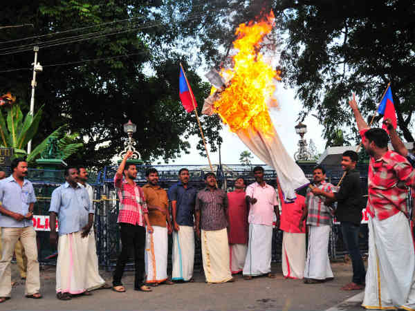 മുഖ്യമന്ത്രി ഉമ്മന്ചാണ്ടിയുടെ കോലം കത്തിച്ചായിരുന്നു പ്രതിഷേധം