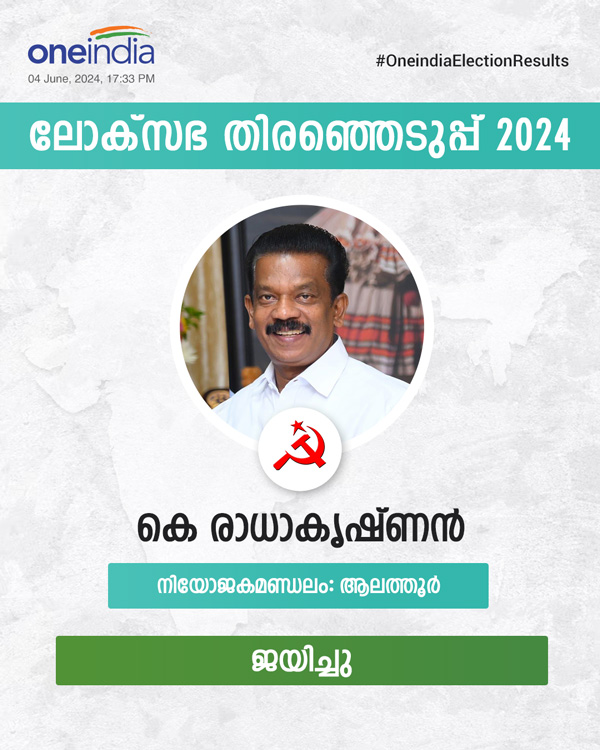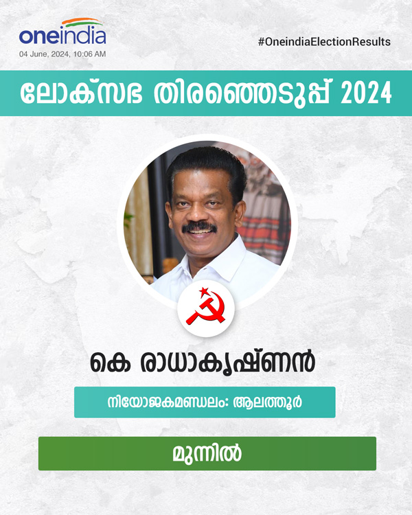 Alathur Result LIVE: ആലത്തൂര് തിരഞ്ഞെടുപ്പ് ഫലം- രാധേട്ടന് കോട്ടക്കൊപ്പം കാത്തത് മാനവും
