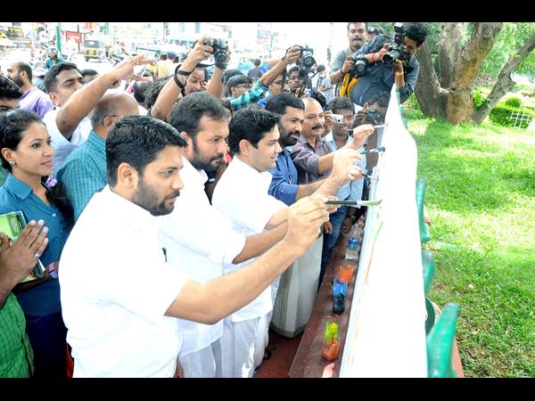 ലഹരി വിരുദ്ധ ദിനത്തില് എംഎല്എമാരായ ഷാഫി പറമ്പില്, പിസി വിഷ്ണുനാഥ്, ഹൈബി ഈഡന്, ടിവി രാജേഷ് എന്നിവര് സെക്രട്ടേറിയറ്റിന് പുറത്ത് ചിത്രം വരക്കുന്നു.