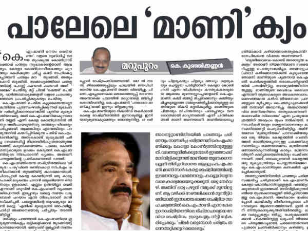 മുഖ്യമന്ത്രിയാകാന് കെഎം മാണി യോഗ്യനാണെന്ന് പറഞ്ഞ് കോടിയേരി ബാലകൃഷ്ണന് ദേശാഭിമാനിയില് ലേഖനം എഴുതിയിരുന്നു. അതില് പറയുന്ന യോഗ്യതകളൊക്കെ കുഞ്ഞിക്കണ്ണന്റെ ലേഖനത്തിലും ആവര്ത്തിക്കുന്നുണ്ട്. മുഖ്യമന്ത്രിയാകാന് ഇടതുമുന്നണി മാണിയെ വിളിക്കുന്നത് സ്നേഹം കൊണ്ടല്ലെന്ന് തിരിച്ചറിയാനുള്ള വിവേകം കെഎം മാണിക്കുണ്ടെന്നും ലേഖനത്തില് പറയുന്നുണ്ട്.