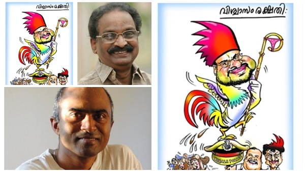 കെകെ സുഭാഷിന്റെ 'വിശ്വാസം രക്ഷതി' എന്ന പേരിലെ കാര്ട്ടൂണില് വിവാദം കനക്കുകയാണ്. പീഡന കേസില് പ്രതിചേര്ക്കപ്പെട്ട മുന് ജലന്തര് ബിഷപ്പ് ഫ്രാങ്കോ മുളയ്ക്കലിന്റെ കയ്യിലെ മെത്രാന് സ്ഥാനീയ ചിഹ്നത്തില് അടിവസ്ത്രത്തിന്റെ ചിത്രം ചേര്ത്തായിരുന്നു കാര്ട്ടൂണ് വരച്ചത്.കാര്ട്ടൂണ് വിശ്വാസികളുടെ വികാരം വ്രണപ്പെടുത്തിയെന്ന പ്രചരണമാണ് ശക്തമായിരിക്കുന്നത്. കാര്ട്ടൂണ് മത പ്രതീകങ്ങളെ അപകീര്ത്തിപ്പെടുത്തുന്നതാണെന്ന് ആവര്ത്തിച്ചിരിക്കുകയാണ് സാംസ്കാരിക മന്ത്രി എകെ ബാലന്.