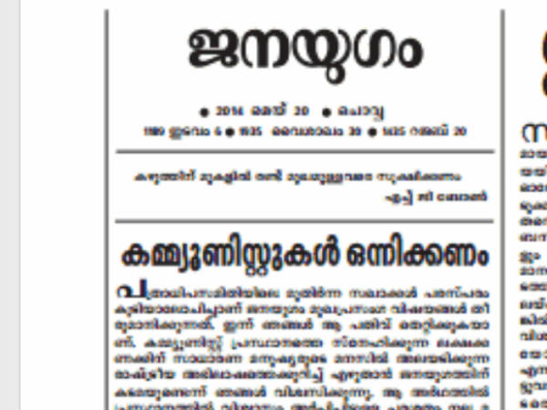 സിപിഐയും സിപിഎമ്മും വേറിട്ട് പ്രവര്ത്തിയ്ക്കേണ്ടവരല്ലെന്നും ഏകീകരണം നിലവിലെ രാഷ്ട്രീയ സാഹചര്യത്തില് അനിവാര്യമാണെന്നും പത്രത്തില് പറയുന്നു. ഇന്ത്യയുടെ മതേതര അടിത്തറ നഷ്ടമാകുന്ന സാഹചര്യമാണ് മോദിയുടെ ഭരണത്തിലൂടെയുണ്ടകുന്നതെന്നും ഇത്തരമൊരു സാഹചര്യത്തില് ജനങ്ങള്ക്ക പ്രതീക്ഷ അര്പ്പിയ്ക്കാനുള്ളത് കമ്യൂണിസ്റ്റ് പാര്ട്ടികളിലാണെന്നും പാവങ്ങള്ക്ക് വേണ്ടി പ്രവര്ത്തിയ്ക്കുന്നത് ഇടതുപക്ഷ പ്രസ്ഥാനങ്ങളാണെന്നും മുഖപ്രസംഗത്തില് പറയുന്നു. കമ്യൂണിസ്റ്റ് പ്രസ്ഥാനങ്ങളുടെ ഏകീകരണം സാധ്യമാകുമോ എന്ന സാധാരണക്കാരന്റെ ചോദ്യം ആവര്ത്തിച്ച് മുഖം പ്രസംഗം അവസാനിയ്ക്കുന്നു.