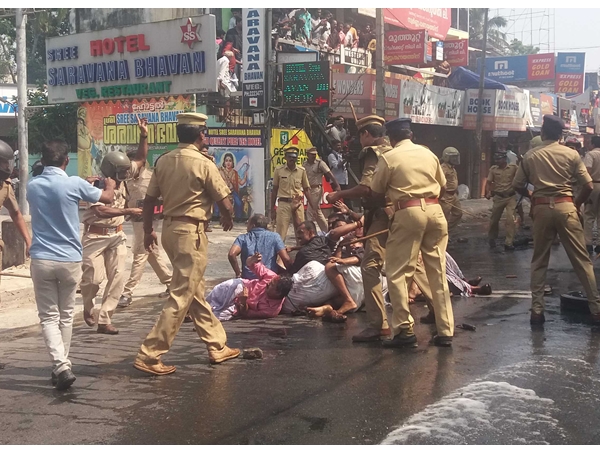 ശബരിമല കർമ്മസമിതിയുടെ നേതൃത്വത്തിൽ ദേശീയപാതയിലെ ആലുംമൂട് ജംഗ്ഷനിൽ റോഡ് ഉപരോധിച്ചു. പ്രവർത്തകർക്ക് നേരെ ജലപീരങ്കി പ്രയോഗിച്ചിട്ടും ഇവർ പിരിഞ്ഞുപോകാത്തതോടെ ലാത്തിച്ചാർജ് നടത്തി. ലാത്തിച്ചാർജിൽ 12 പേർക്ക് പരിക്കേറ്റു. പൊലീസ് വളഞ്ഞിട്ട് തല്ലുകയായിരുന്നെന്ന് പ്രവർത്തകർ പറഞ്ഞു. ബി.ജെ.പി നേതാക്കളായ സി.പി. ശശി, എൻ.പി. ഹരി, മഞ്ചത്തല സുരേഷ്, നഗരസഭ കൗൺസിലർമാരായ ഷിബുരാജ് കൃഷ്ണ, ഹരികുമാർ, കൂട്ടപ്പന മഹേഷ് എന്നിവർക്ക് സാരമായി പരിക്കേറ്റു. എൻ.പി. ഹരിയുടെ തലയ്ക്കും കാലിനും കൈകൾക്കും ശശിയുടെ തലയ്ക്കുമാണ് പരിക്കേറ്റത്. പരിക്കേറ്റവരെ നെയ്യാറ്റിൻകര ജില്ലാ ആശുപത്രിയിൽ പ്രവേശിപ്പിച്ചു.