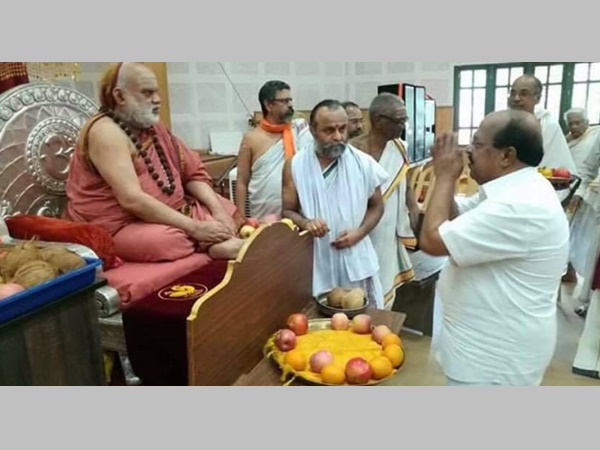 ശൃംഗേരി ശ്രീശാരദാപീഠം മഠാധിപതി ഭാരതീതീര്ത്ഥ ശങ്കരാചാര്യരുടെ അനുഗ്രഹം തേടി എത്തിയതാണ് മന്ത്രി ജി. സുധാകരൻ. ഇന്നലെ ആലപ്പുഴ എസ് ഡി വി സെന്റിനറി ഹാളിലാണ് പഴങ്ങൾ നിറച്ച താലവുമായി സുധാകരൻ അനുഗ്രഹം തേടി എത്തിയത്. നിറഞ്ഞ ഭക്തിയോടെ സ്വാമിയെ കാണാൻ എത്തിയ സുധാകരൻ തൊഴുത് അനുഗ്രഹവും വാങ്ങി.